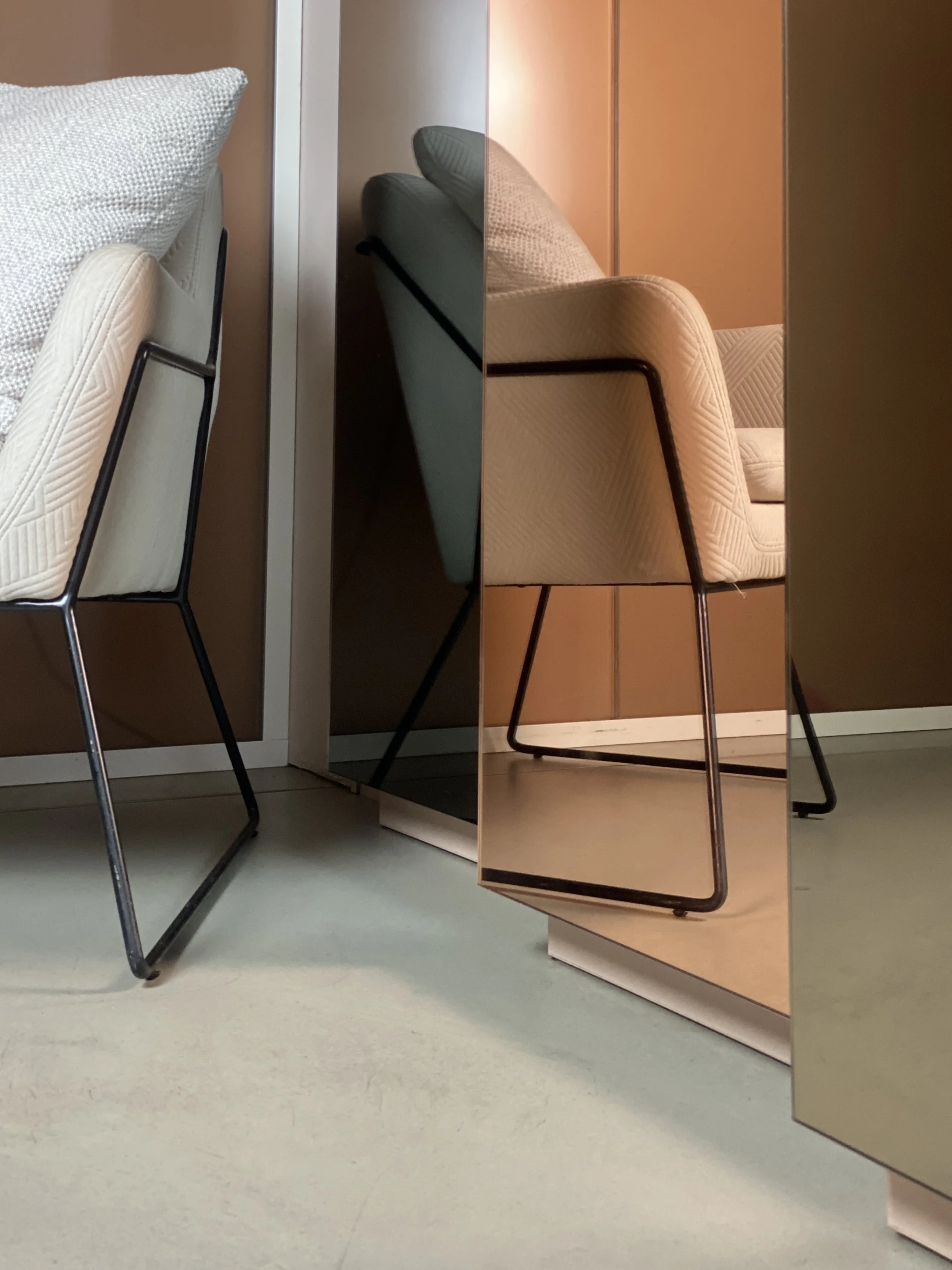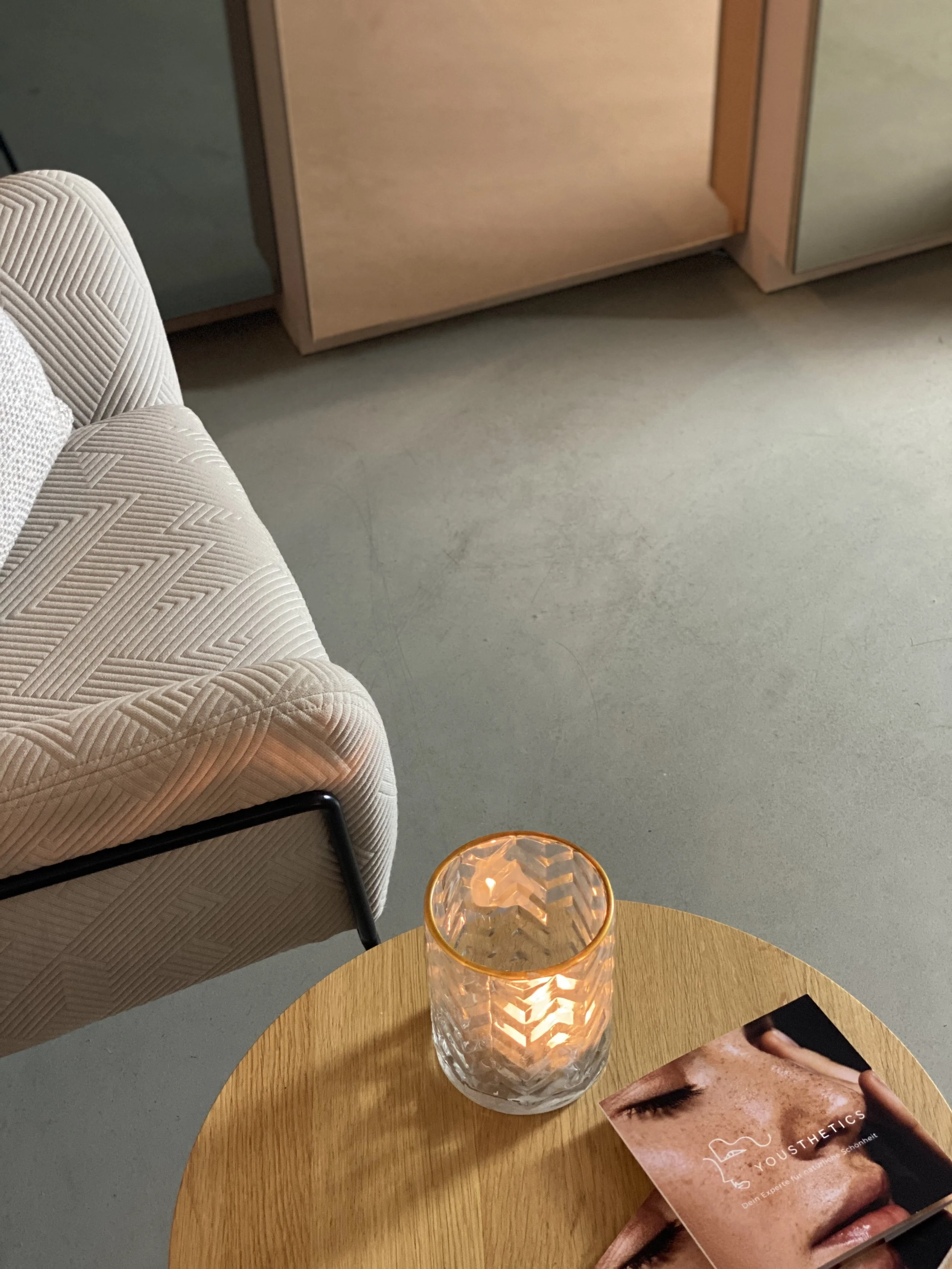 Located in the heart of Berlin Mitte, the clinic is designed to create a relaxed and welcoming atmosphere that deliberately sets itself apart from the typical clinic environment and conveys a sense of wellness and relaxation. The contrast between antiseptic materials such as brushed steel and mirror elements meet gentle gradients, flowing fabrics and soft shapes representing the identity of Yousthetics.